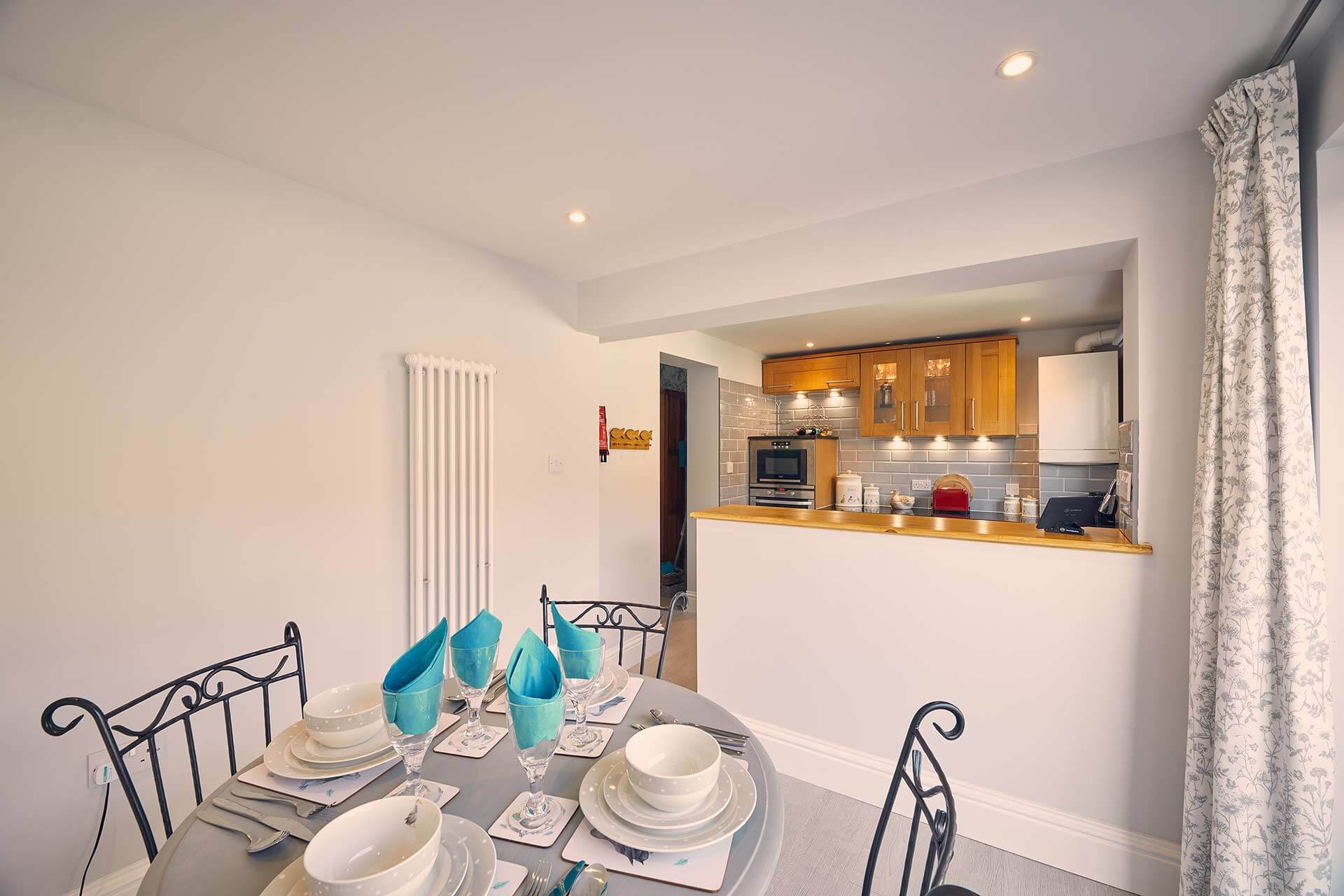 Ideal for self-catering breaks, you’ll be able to prepare and enjoy home cooked meals at Roselyn. Head to the kitchen and you’ll find a whole host of appliances including a dishwasher, oven, microwave, toaster, kettle and fridge, (the freezer can be found in the under stairs cupboard). The open plan space also includes the dining area. There is a round table with four chairs so there is ample space for your whole party.