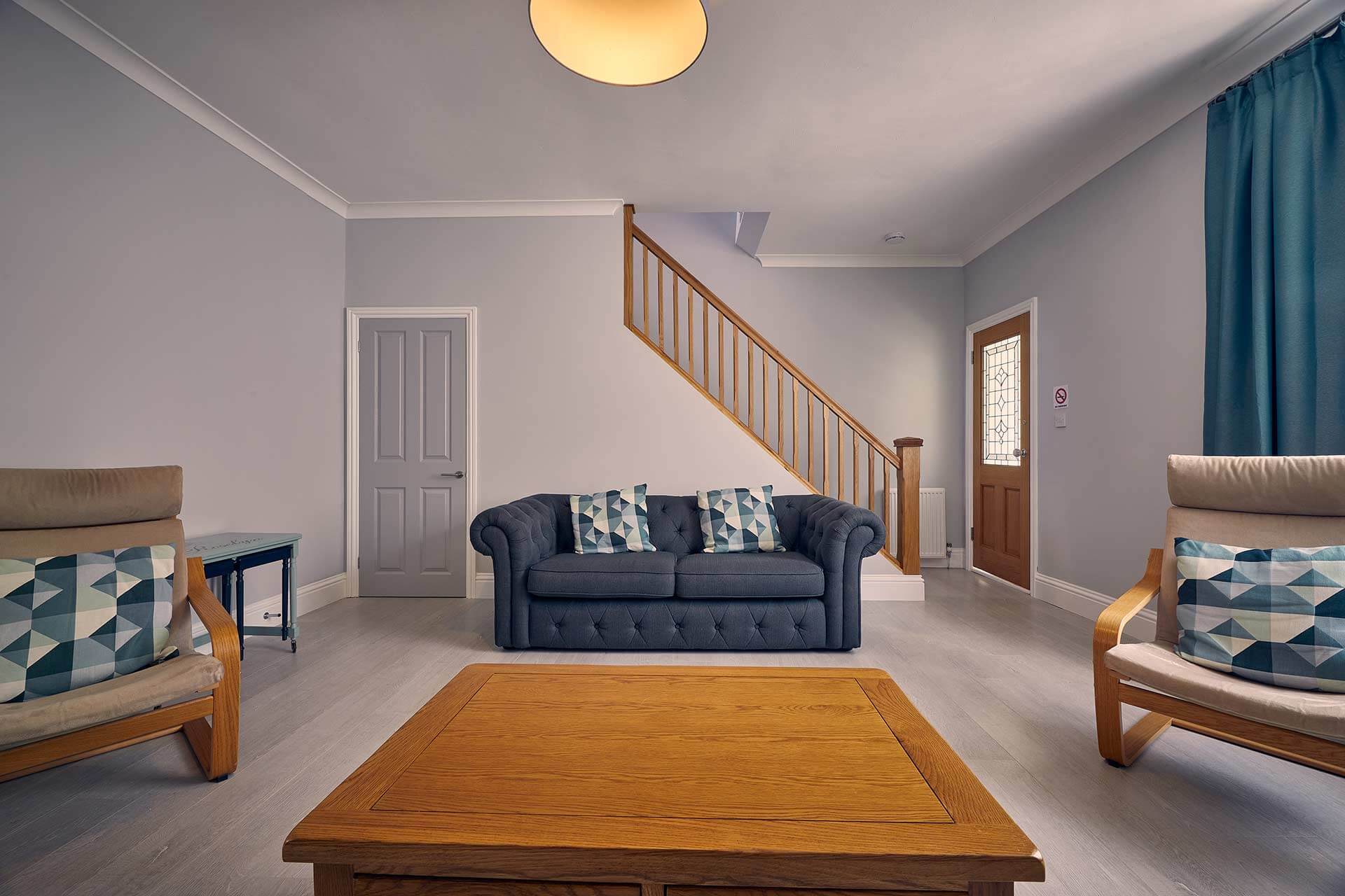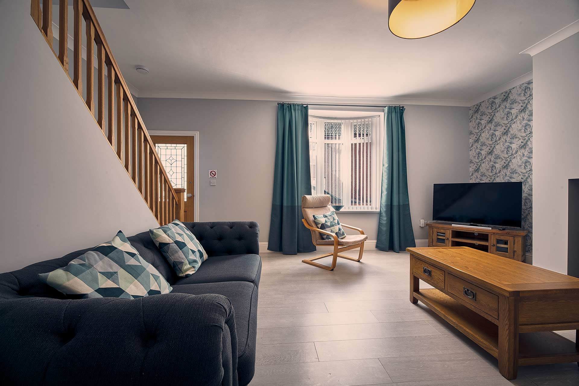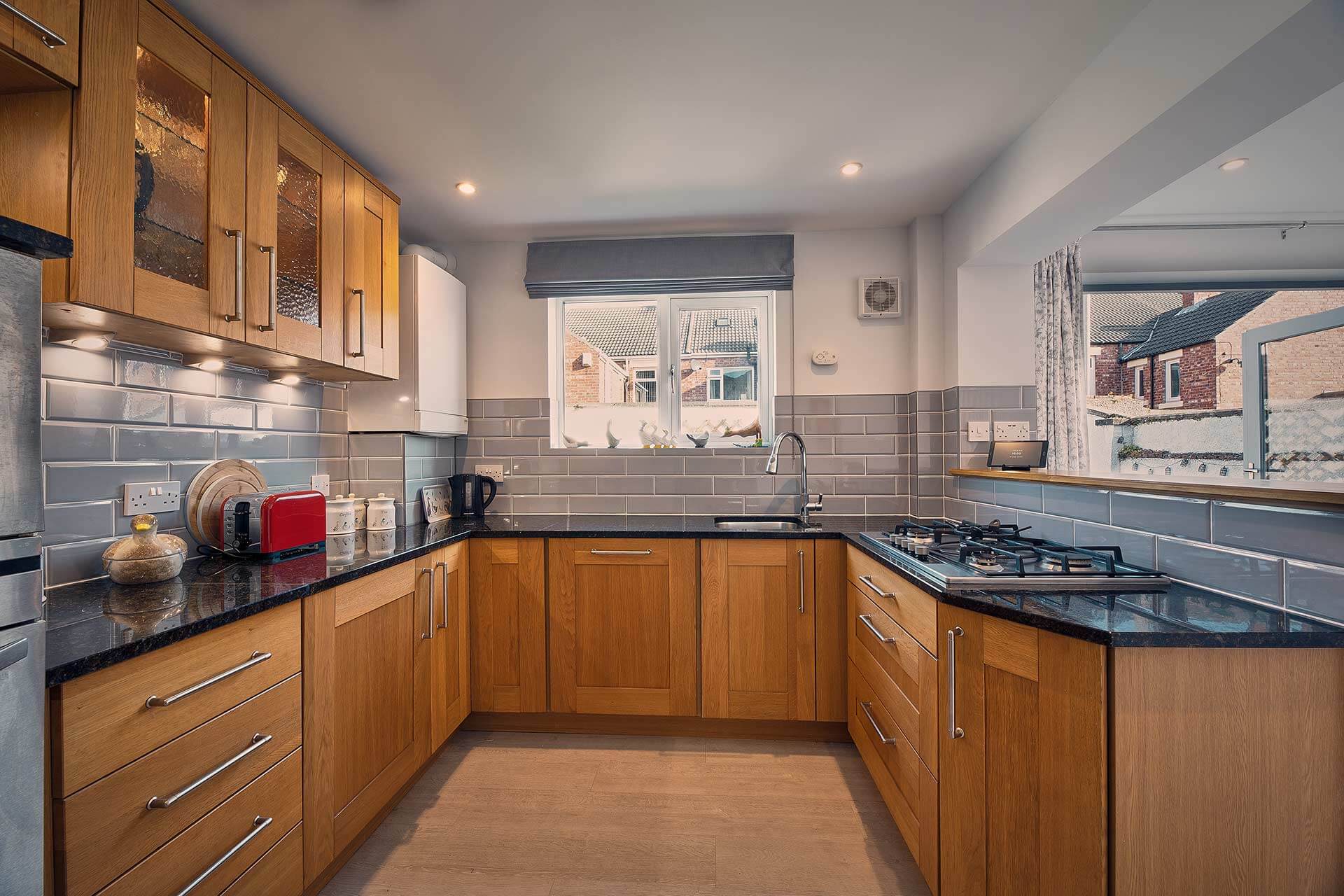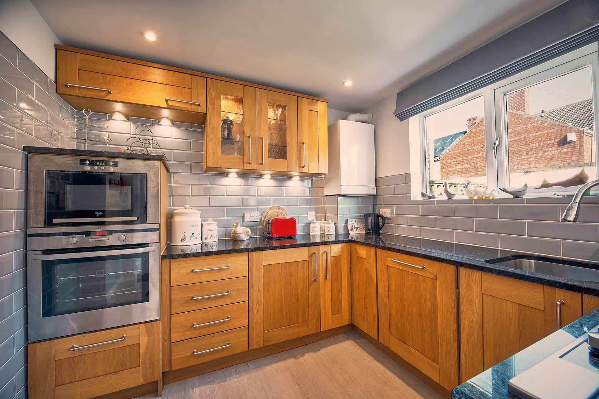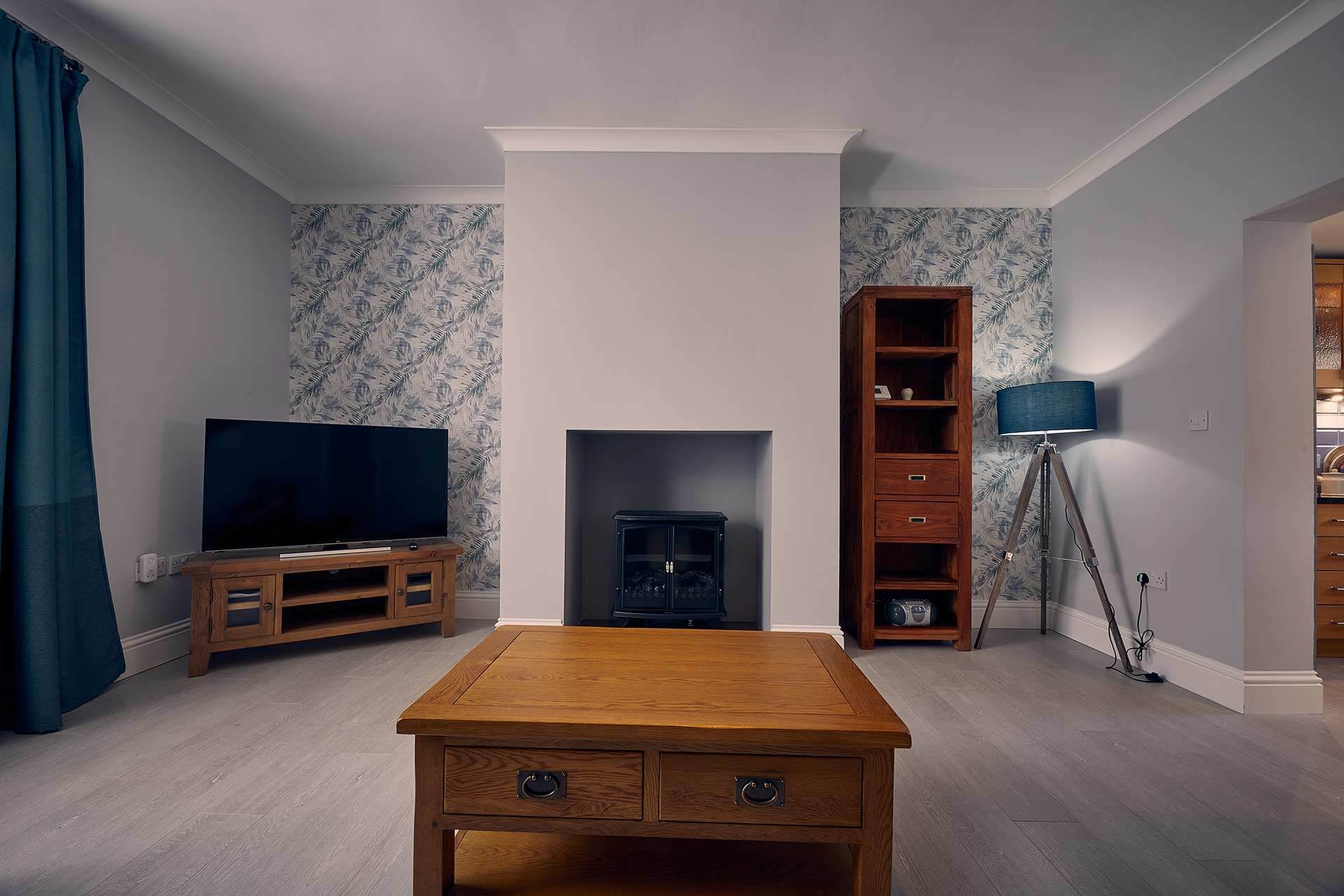 Roselyn has a spacious and bright living room. It has a stylish look with wallpapered feature alcoves, wood effect flooring and a chesterfield style sofa. Perfect for relaxing, you can turn on the flat screen TV to keep up with your favourite shows or get lost in a good book. In the colder months, retreat to the living room after a long day of exploring Northumberland and turn on the log effect electric fire to enjoy a cosy night in with your loved ones.